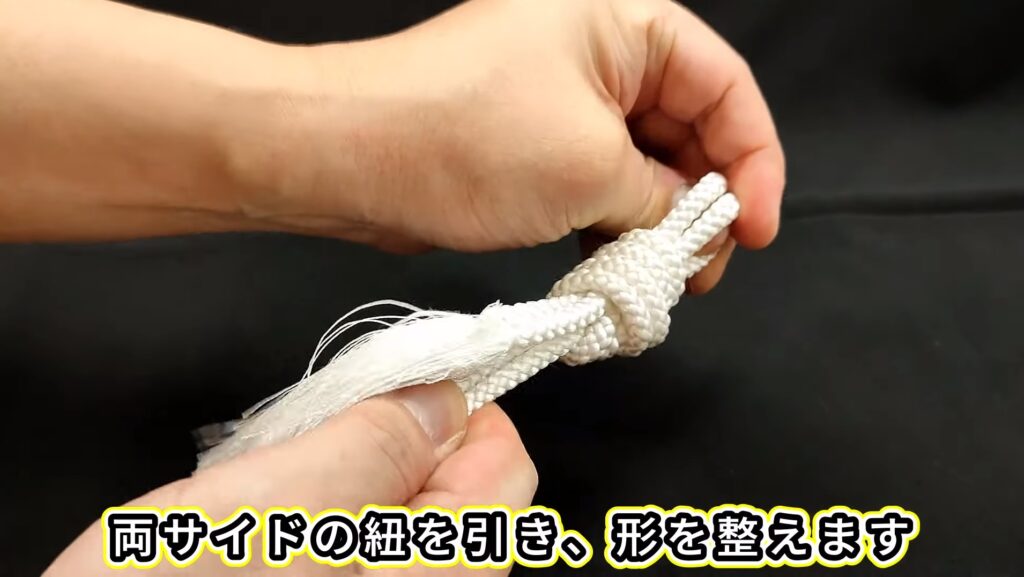 4.両サイドの紐を引き、形を整えます。