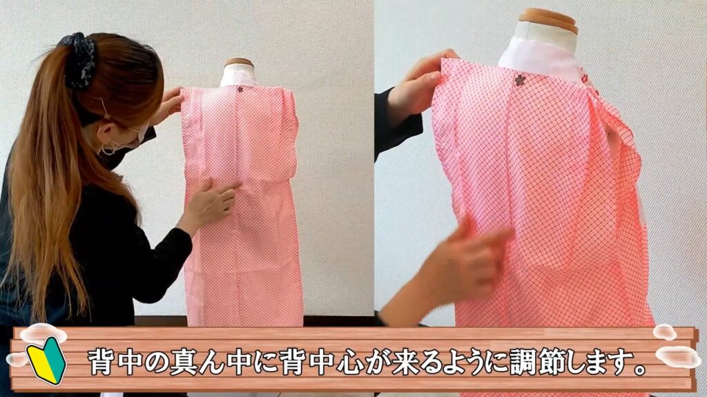7.着付けクリップや洗濯バサミなどで中心を固定すると着付けしやすくなります。